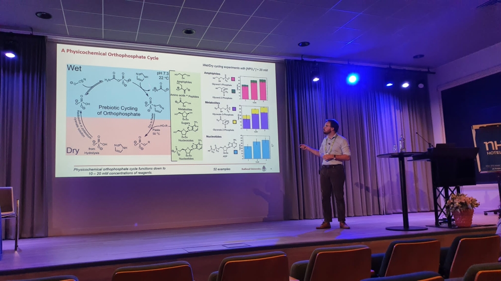 The Huck group was well represented this year at CHAINS – the main chemistry conference for chemists in the Netherlands. One of our postdocs, Oliver Maguire, presented his recent work on a prebiotic phosphorylation system for creating phosphorylated molecules critical to the Origins of Life. Many members of the group also presented their work in the poster sessions.